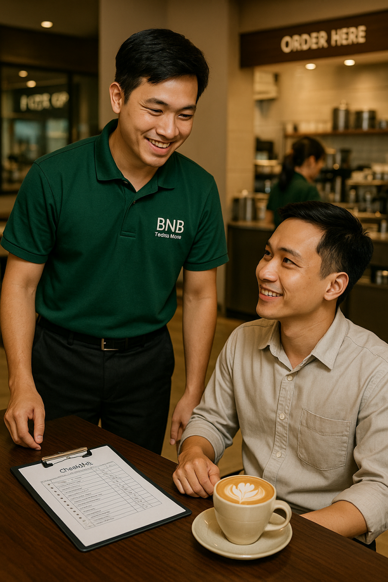 - Đóng ca: đối soát doanh thu, vệ sinh quầy, ghi nhật ký ca, bàn giao cho ca sau.